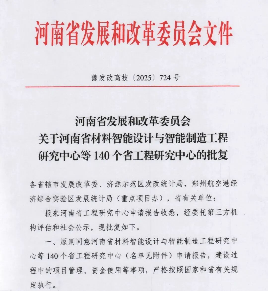 近日,省级工程研究中心申报结果揭晓,根据《河南省发展和改革委员会关于河南省材料智能设计与智能制造工程研究中心等140个省工程研究中心的批复》,我院申报的“河南省有色金属新材料智能制造应用工程研究中心”,参与申报的“河南省骏通新能源智能专用车工程研究中心”成功获批,这不仅标志着我院在“双高”建设中实现省级工程研究中心新突破,更推动学院在新材料、新能源科研平台建设迈上新台阶。